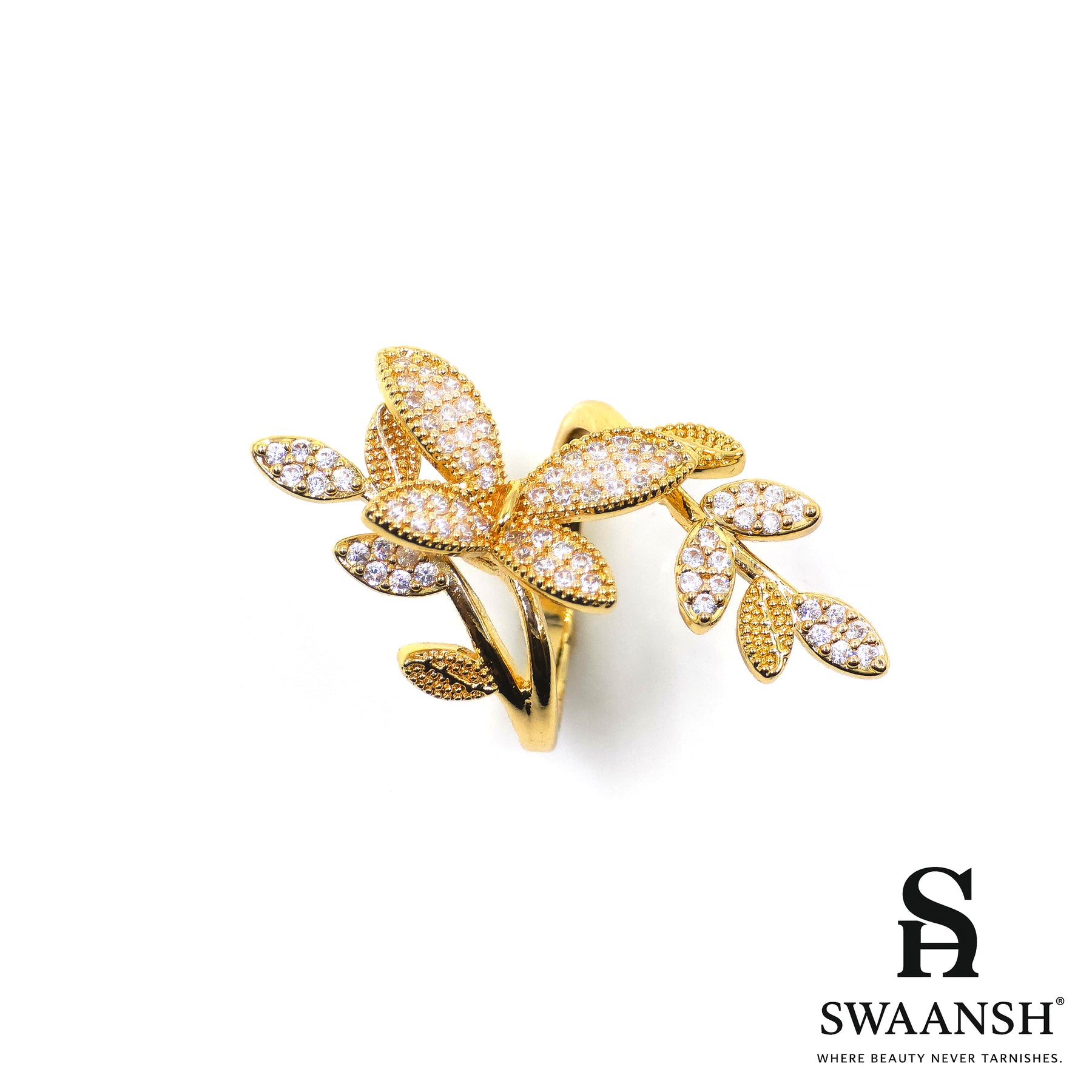 • Leafy floral design, fully studded with premium zircons