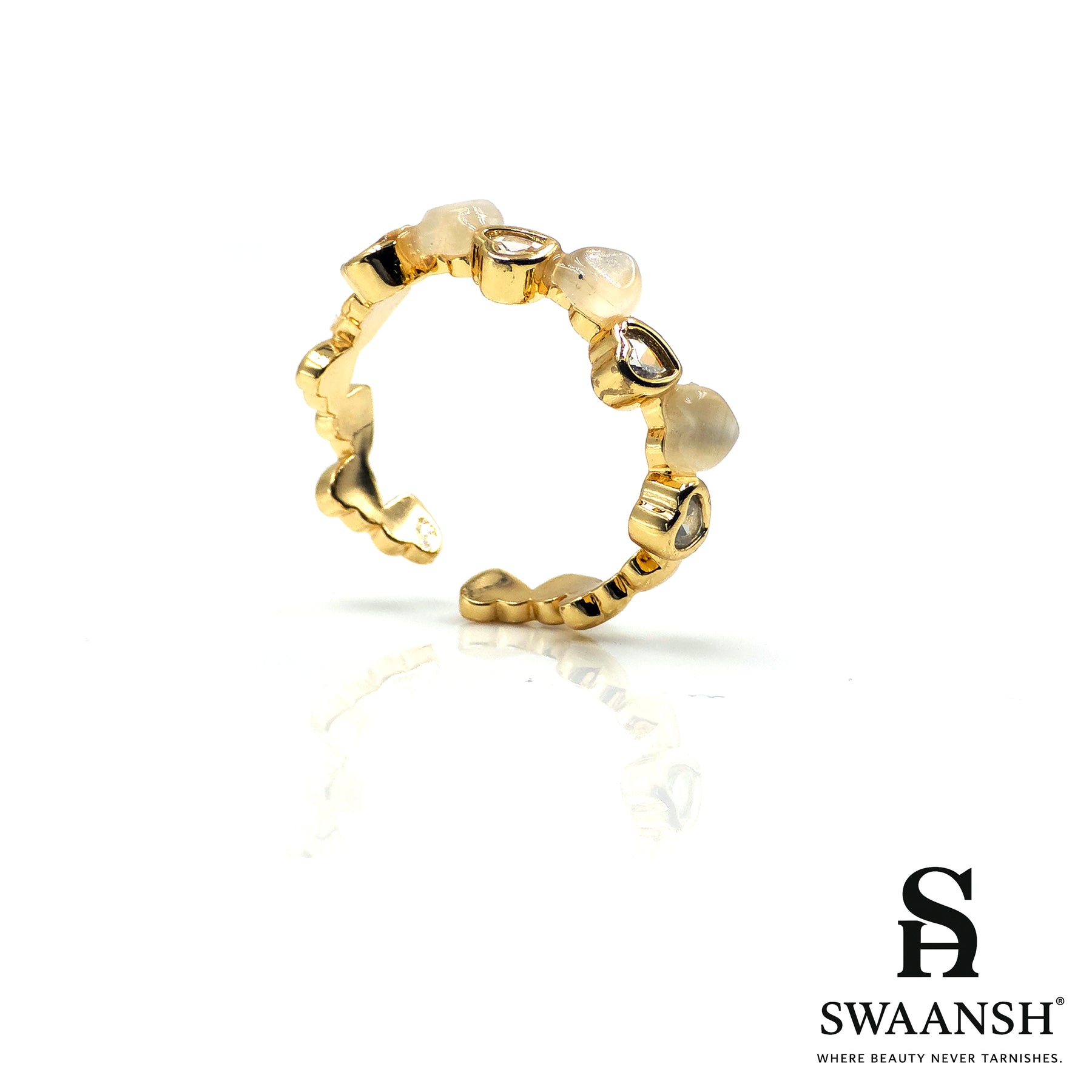 Handcrafted adjustable gold ring with moonstone-inspired beads – Moonstone Glow Ring by Swaansh