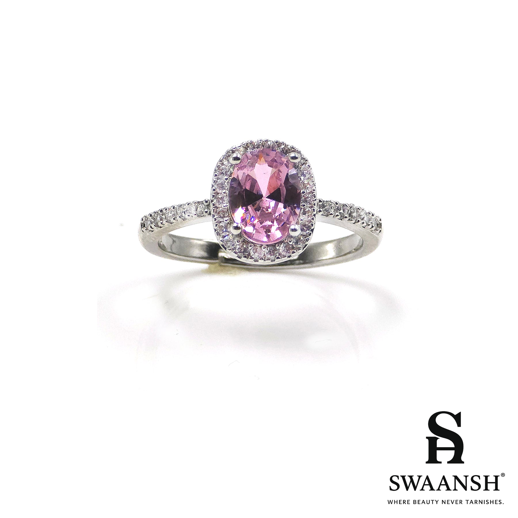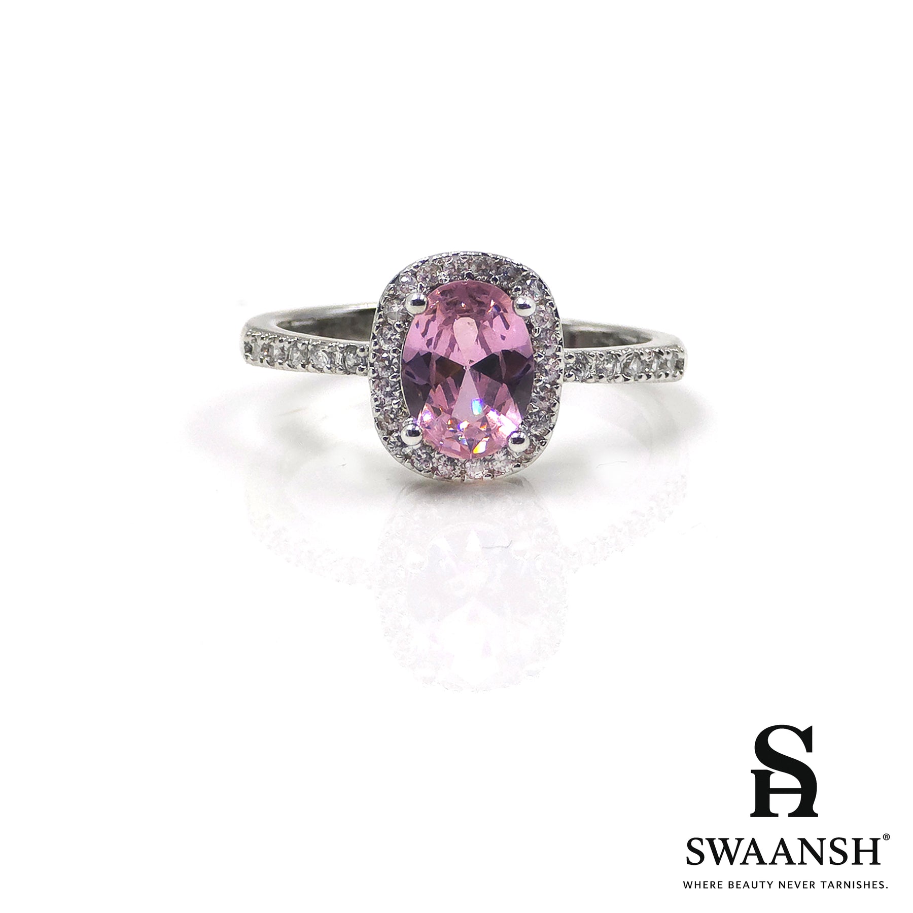 The Rosé Grace Ring is a delicate harmony of femininity and brilliance. Featuring an oval-cut pink center stone, embraced by a fine halo of white zircons, this ring adds a touch of poise and sparkle to any outfit. Its slender silver-finish band gives it a refined, timeless charm that’s perfect for romantic gifts or self-celebration.