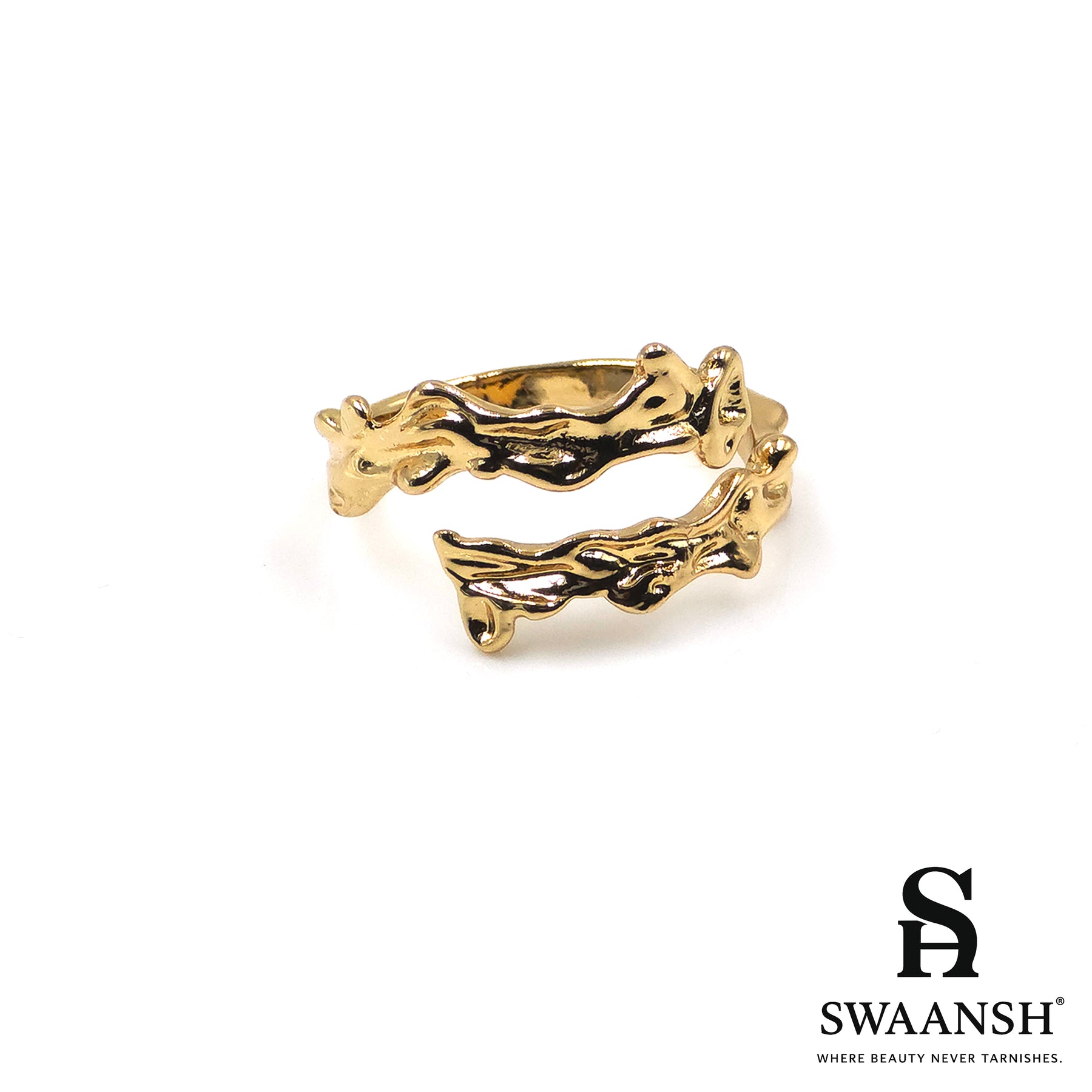 The Wild Root ring brings alive the essence of nature with its bark-inspired texture and organic open silhouette. Every curve feels hand-molded, as if directly carved from golden vines — giving it a wild yet elegant identity.