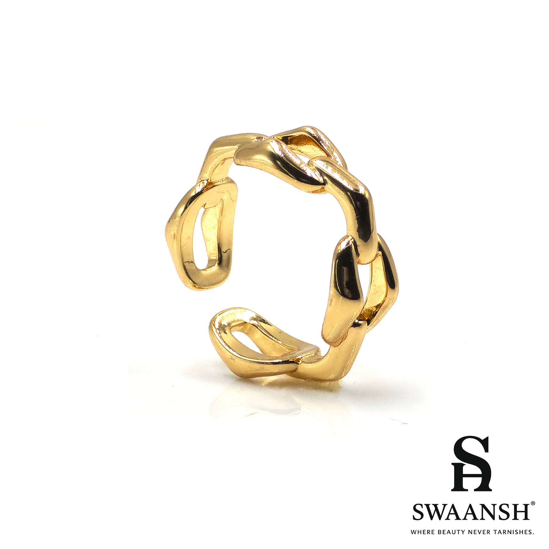 The BoldLinks Ring features oversized, high-polish chain links crafted in a statement silhouette that’s both edgy and effortlessly stylish. With a glossy gold finish and open adjustable design, this ring works perfectly as a solo stunner or stacked accent — for both men and women.